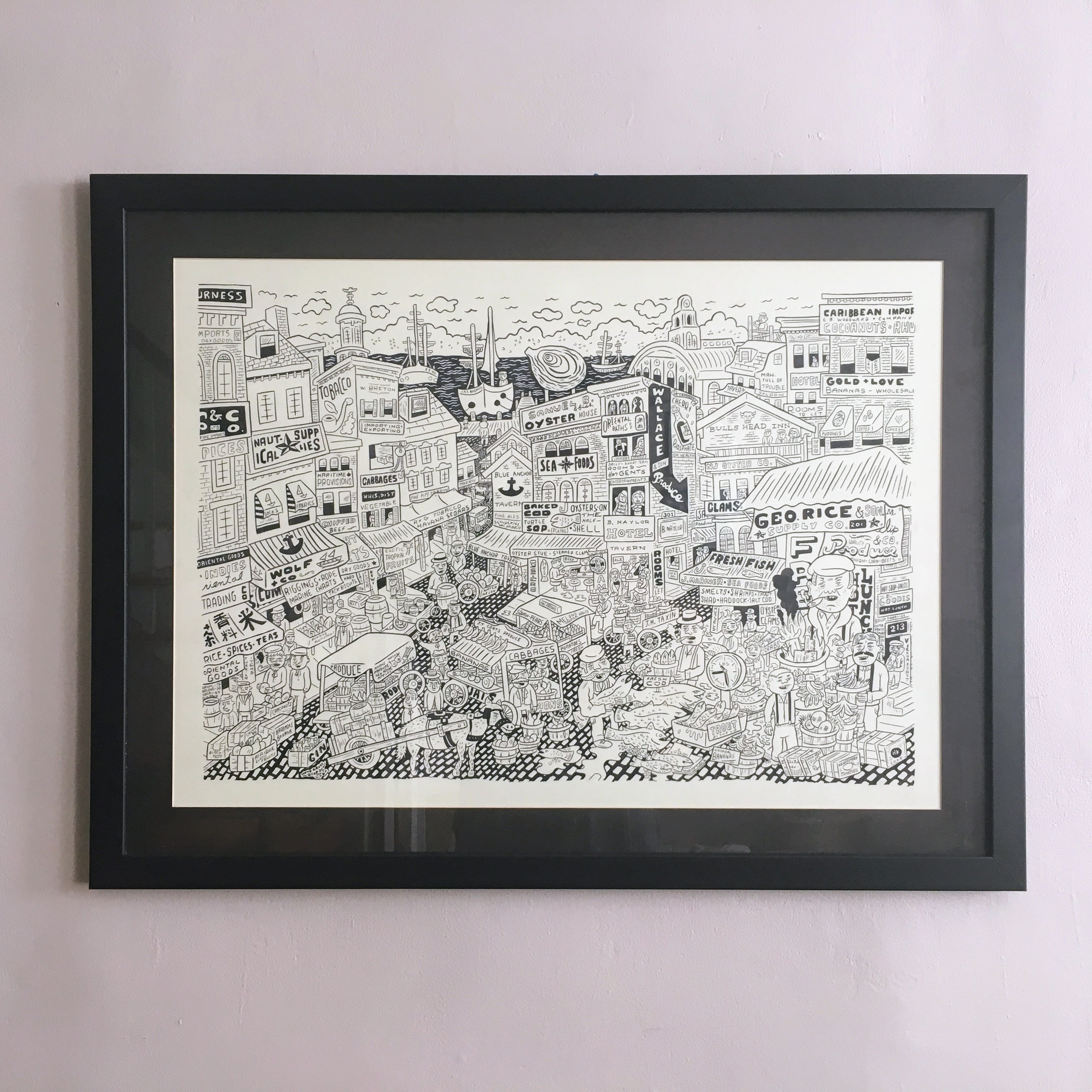 This is an ORIGINAL ink drawing, professionally framed by Flying Pig picture frames in Philadelphia.