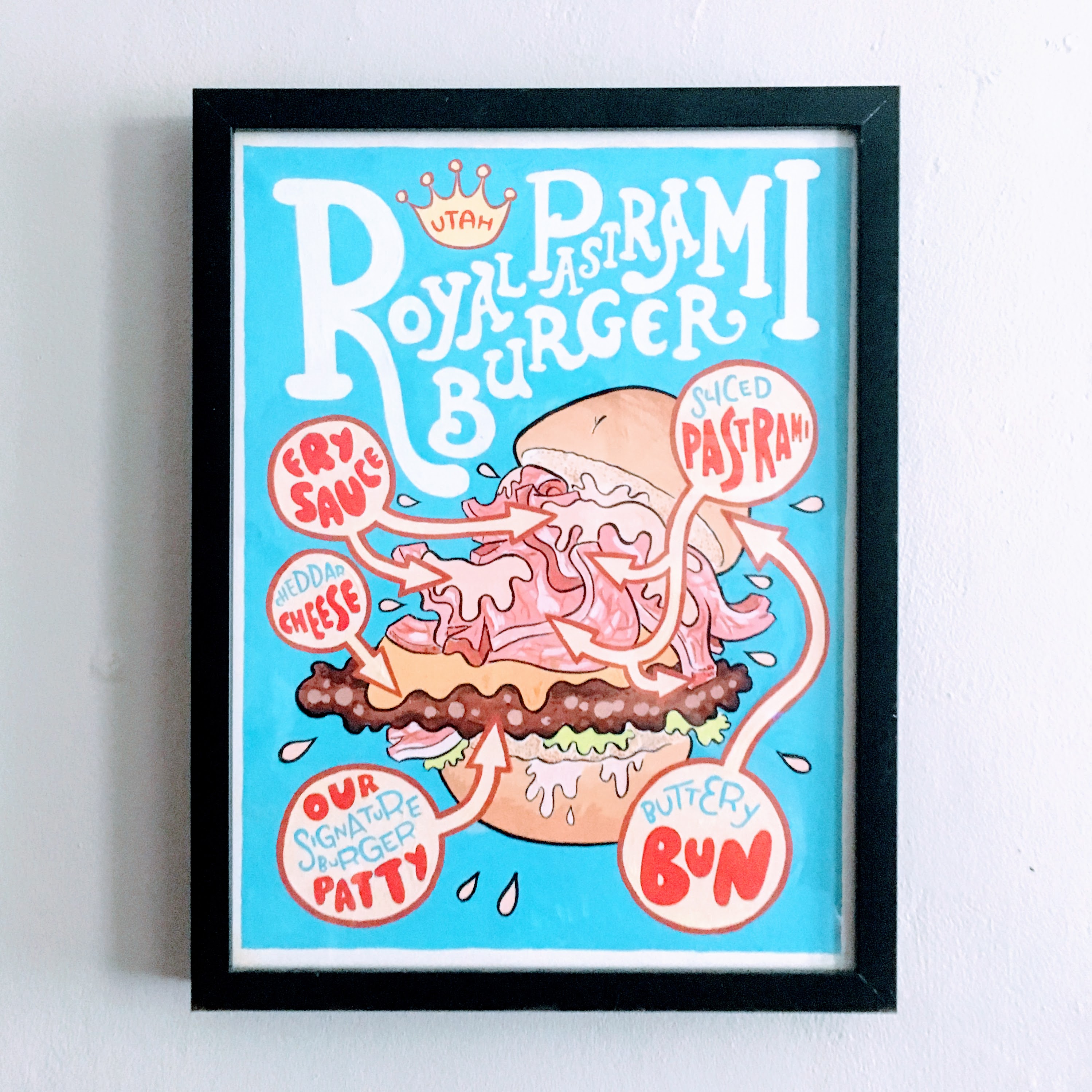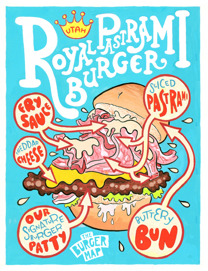 Originally for The Burger Map restaurant in Brasil; based on Utah's famous Pastrami-topped burgers.