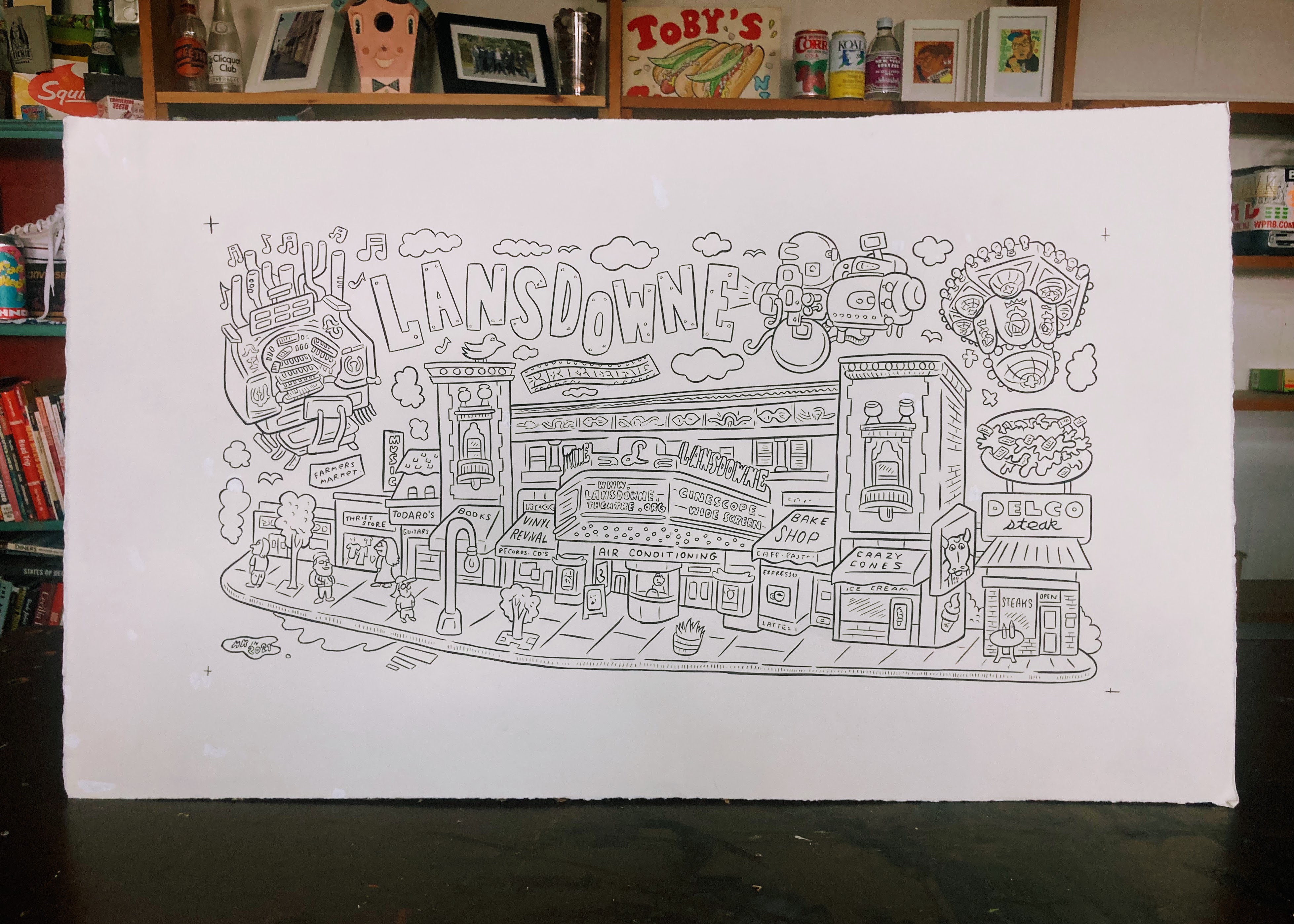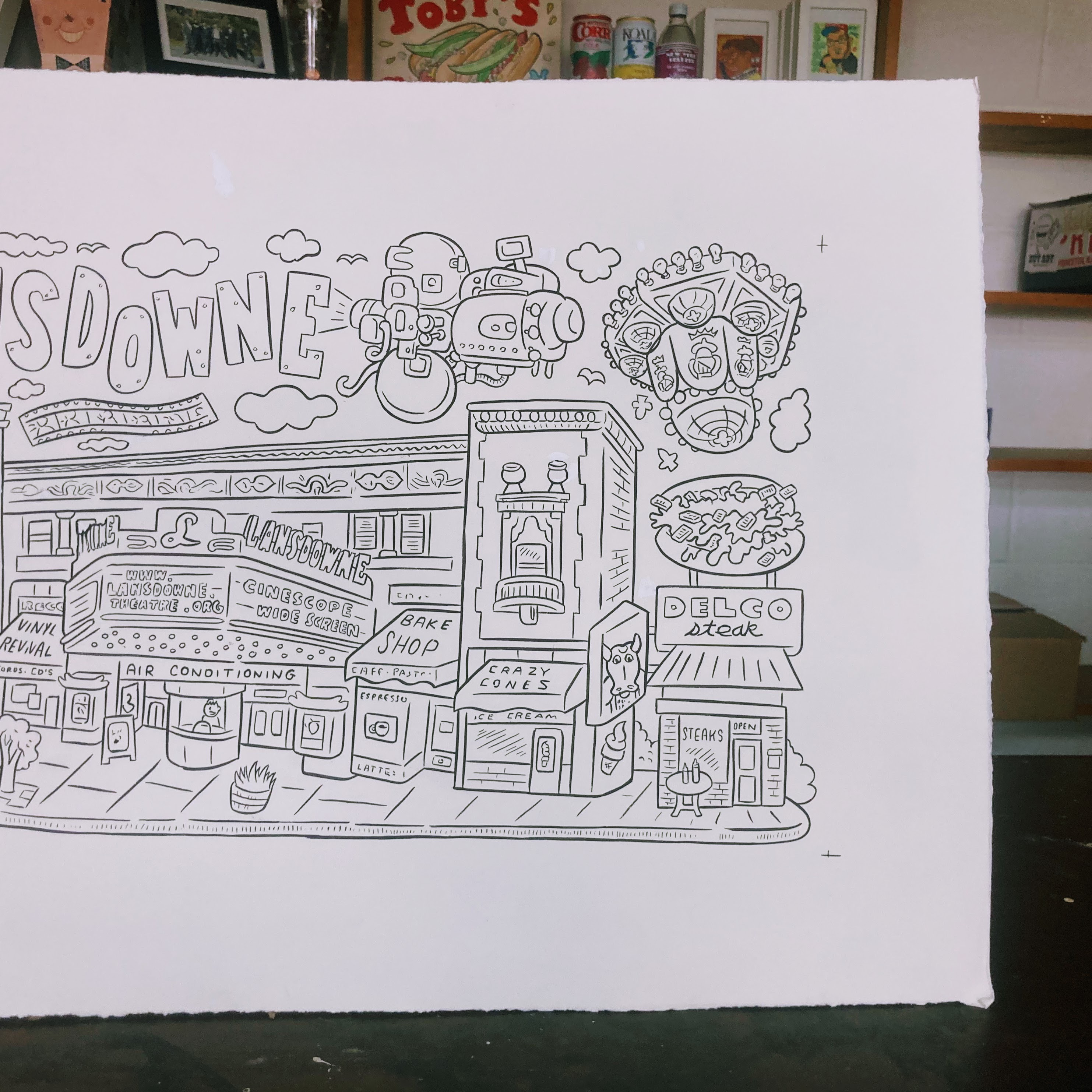 From a series of 18 Delco neighborhood illustrations (not all will be for sale, but a lot of them) - this piece features the Landsdowne Theater and historic organ.