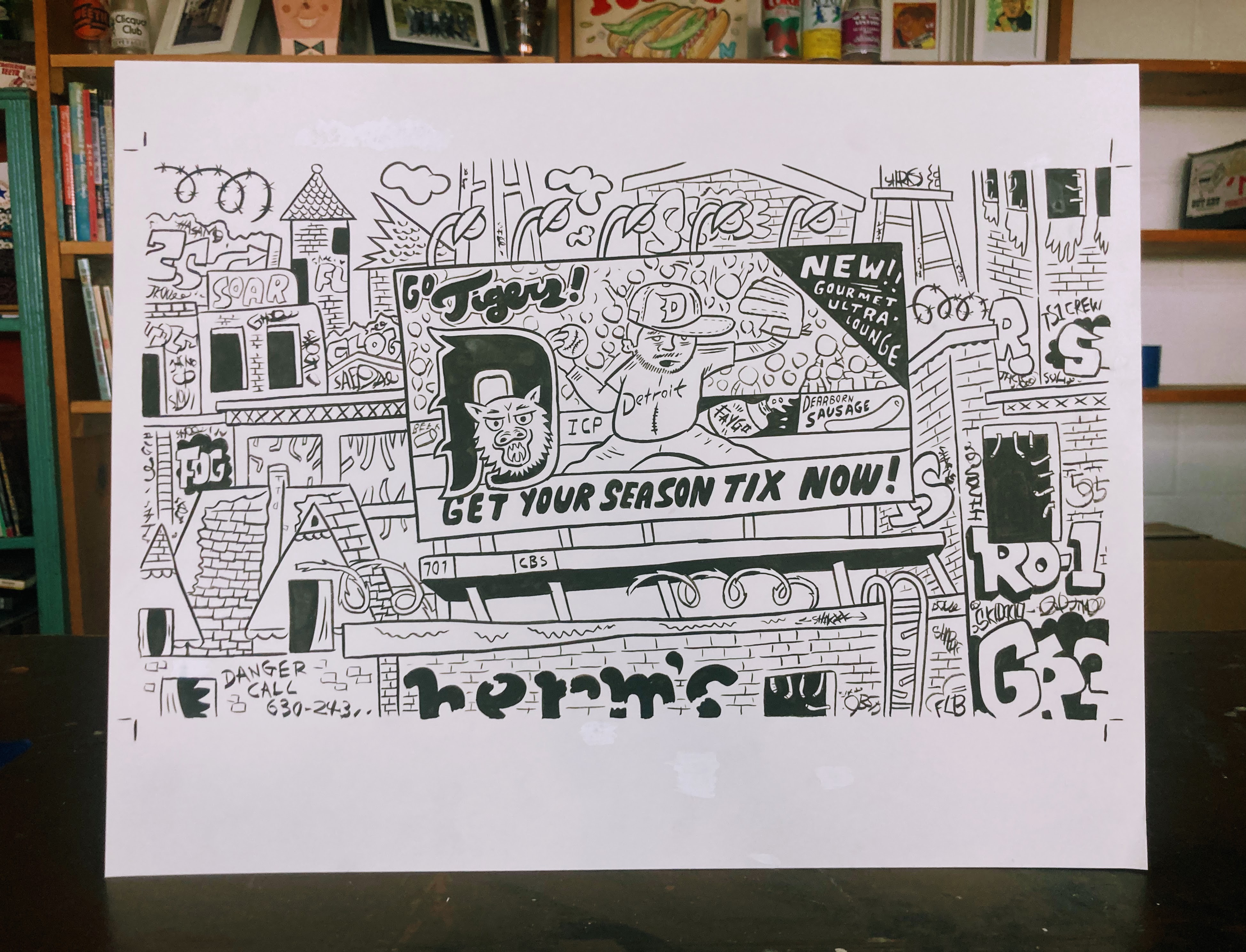 Ink on Bristol Board, 2016 8" x 13.25" artwork on 11" x 14" paper, black & white.