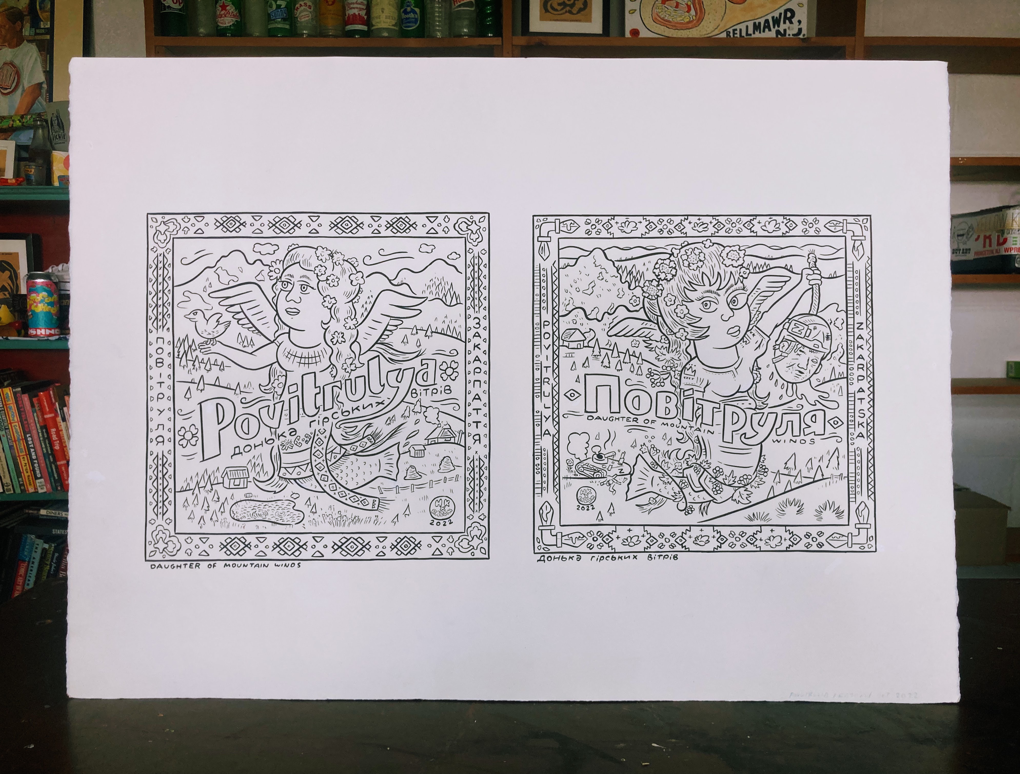 Black & White 10.5" x 21.5" artwork on 19" x 26" paper.