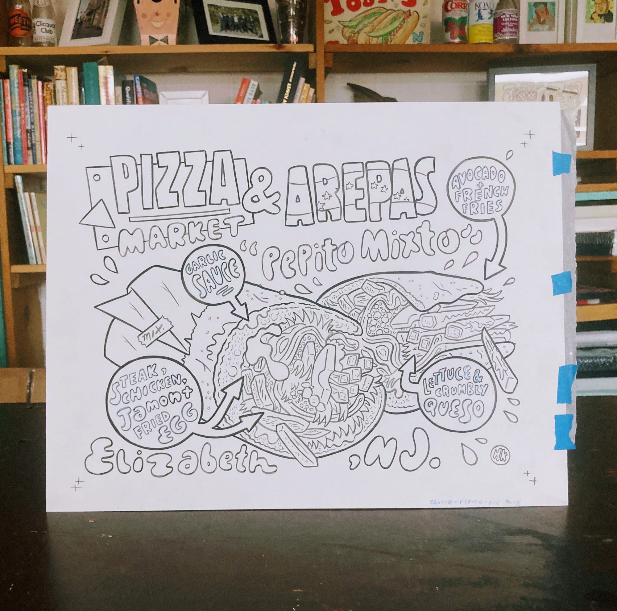 Ink on Bristol Board, 2018 9" x 12" artwork on 11" x 14" paper, black & white.