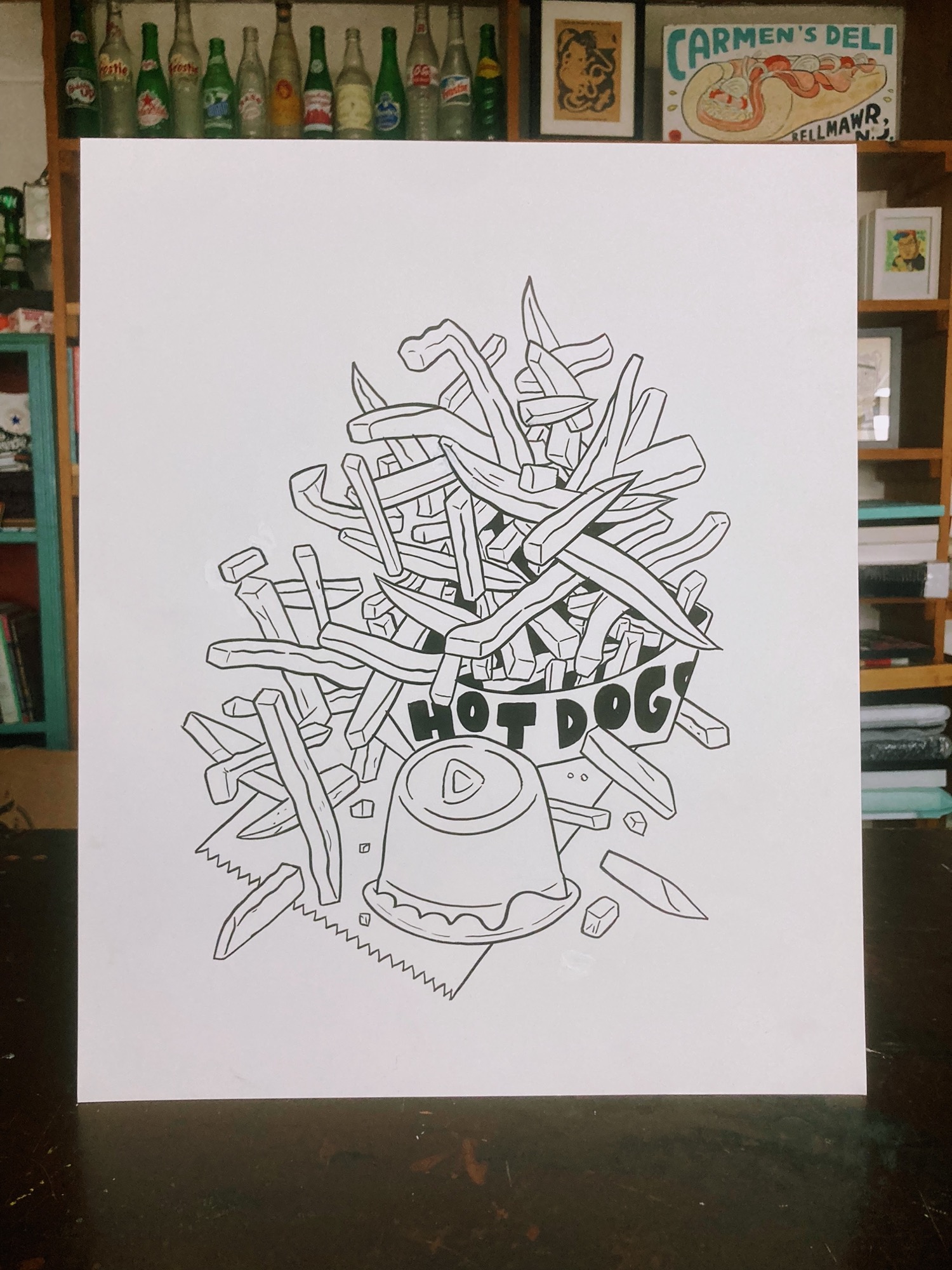 Also check the prints section, not this artwork, but I have a "Dirty O" hot dog print available, done around the same time!
