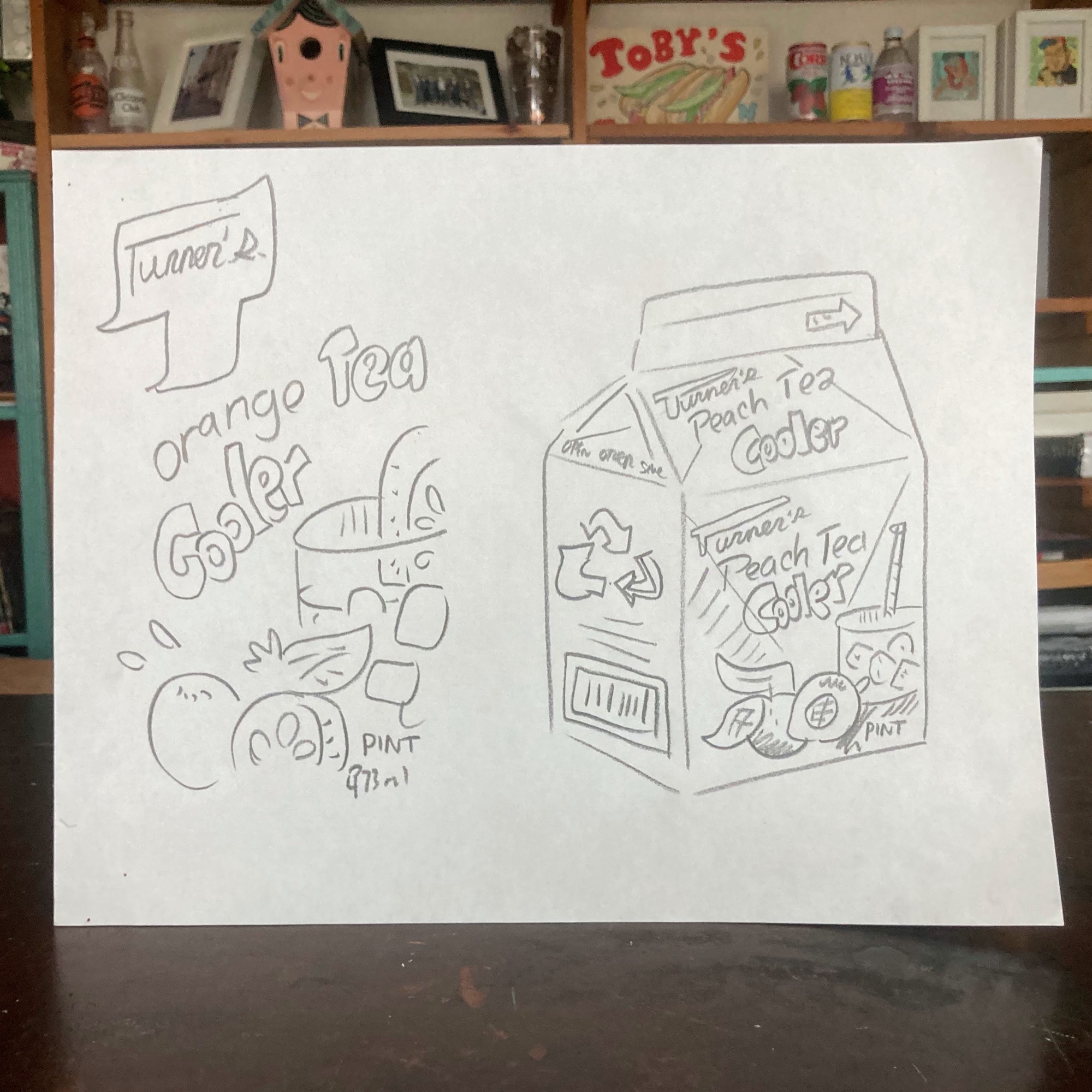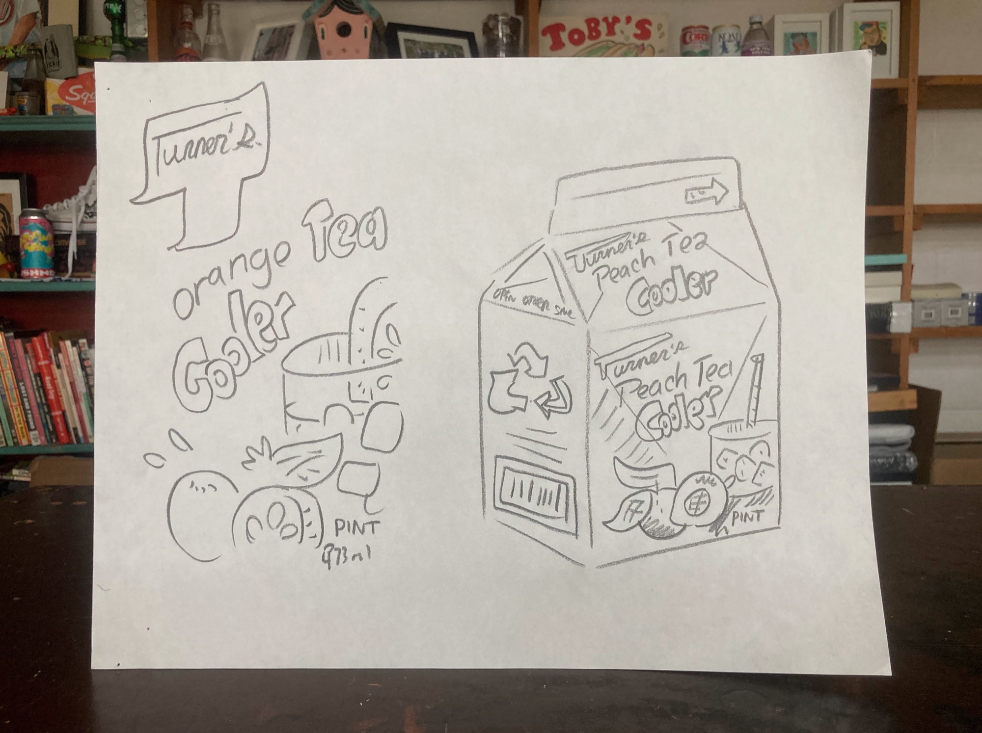 Preliminary sketches for an unpublished "Pennsylvania Chips & Dairy Tea" project.