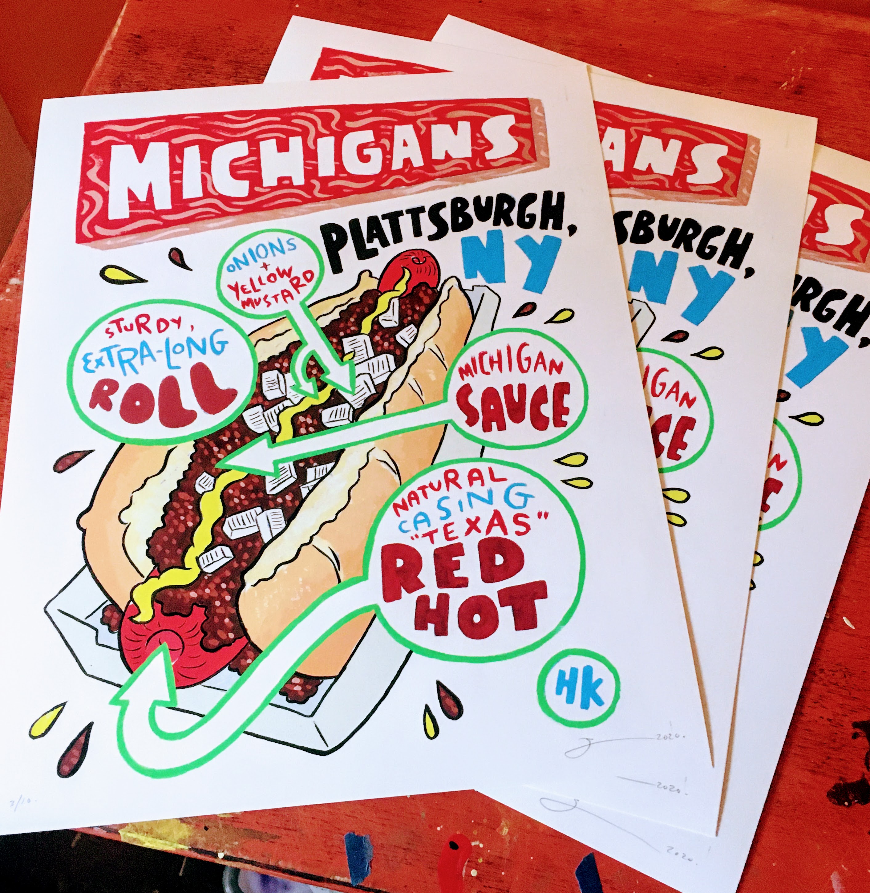 One of the weirdest "geographically named" regional dogs where the legend of the name gets complicated and murky, but also they are really delicious! If you're from anywhere near this area, you know the deal! Art originally for Serious Eats.