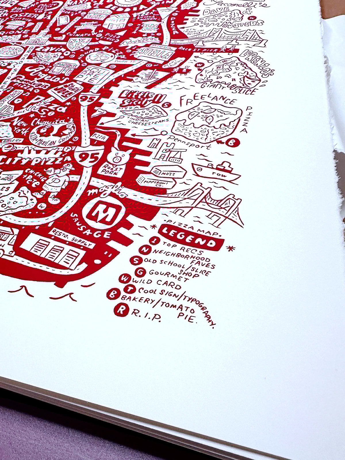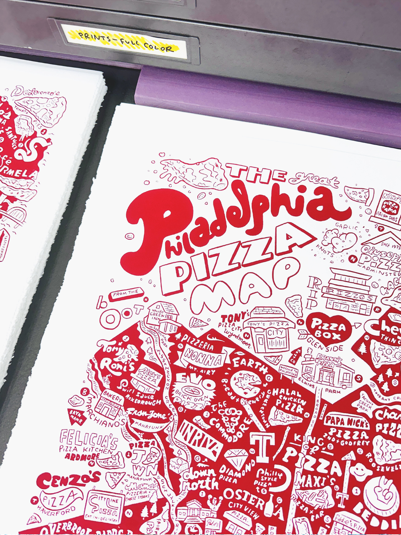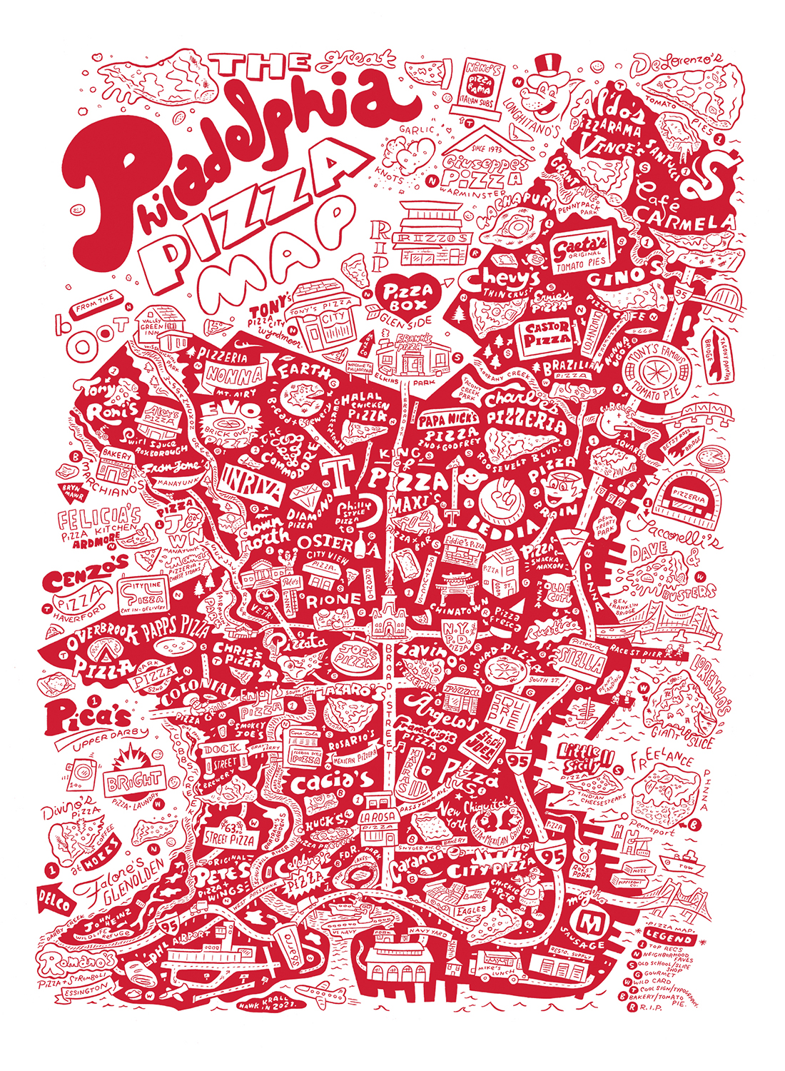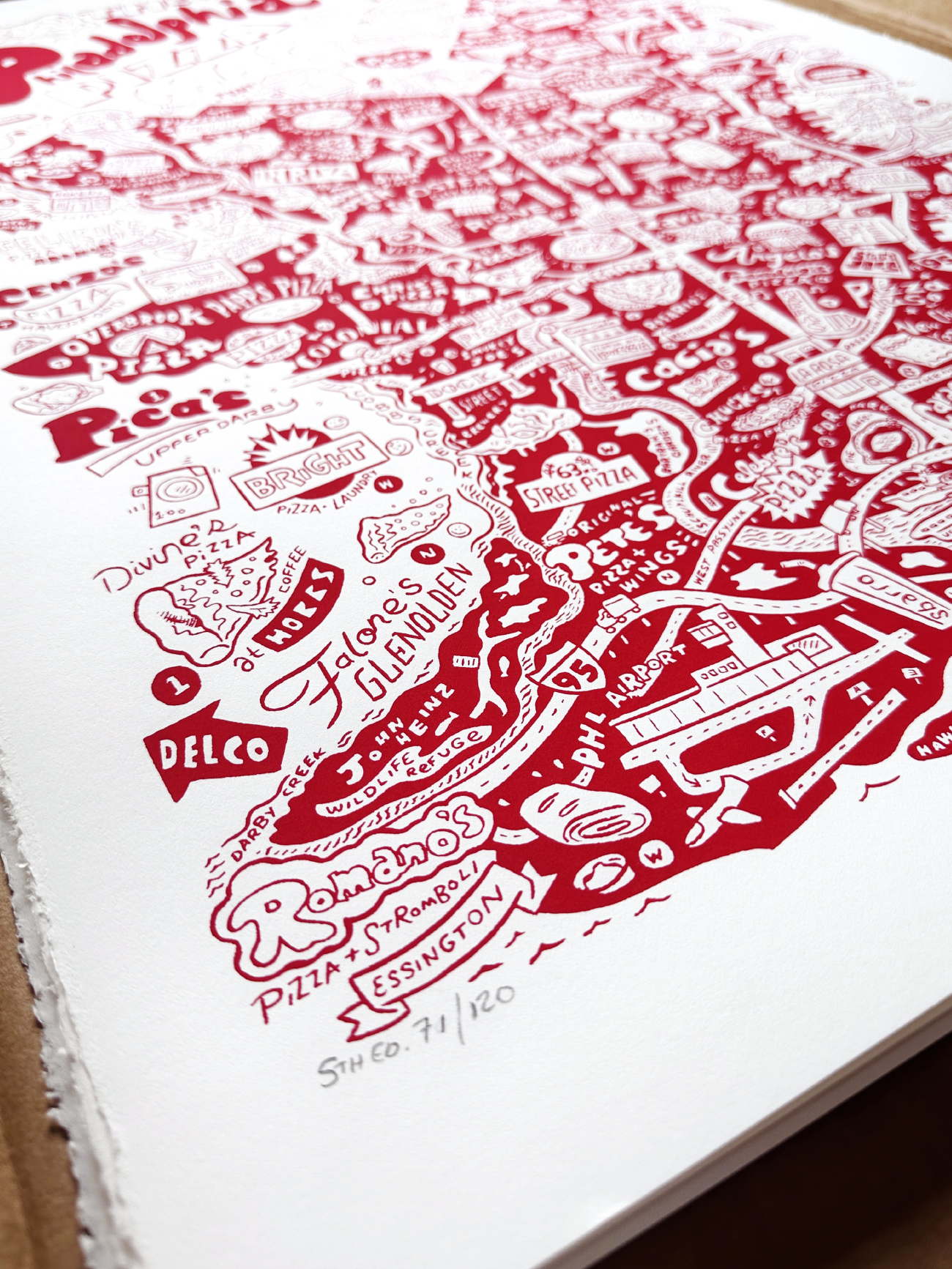 5th printing available now by popular demand! Philadelphia Pizza Map in VINTAGE BURGUNDY, edition of 120.