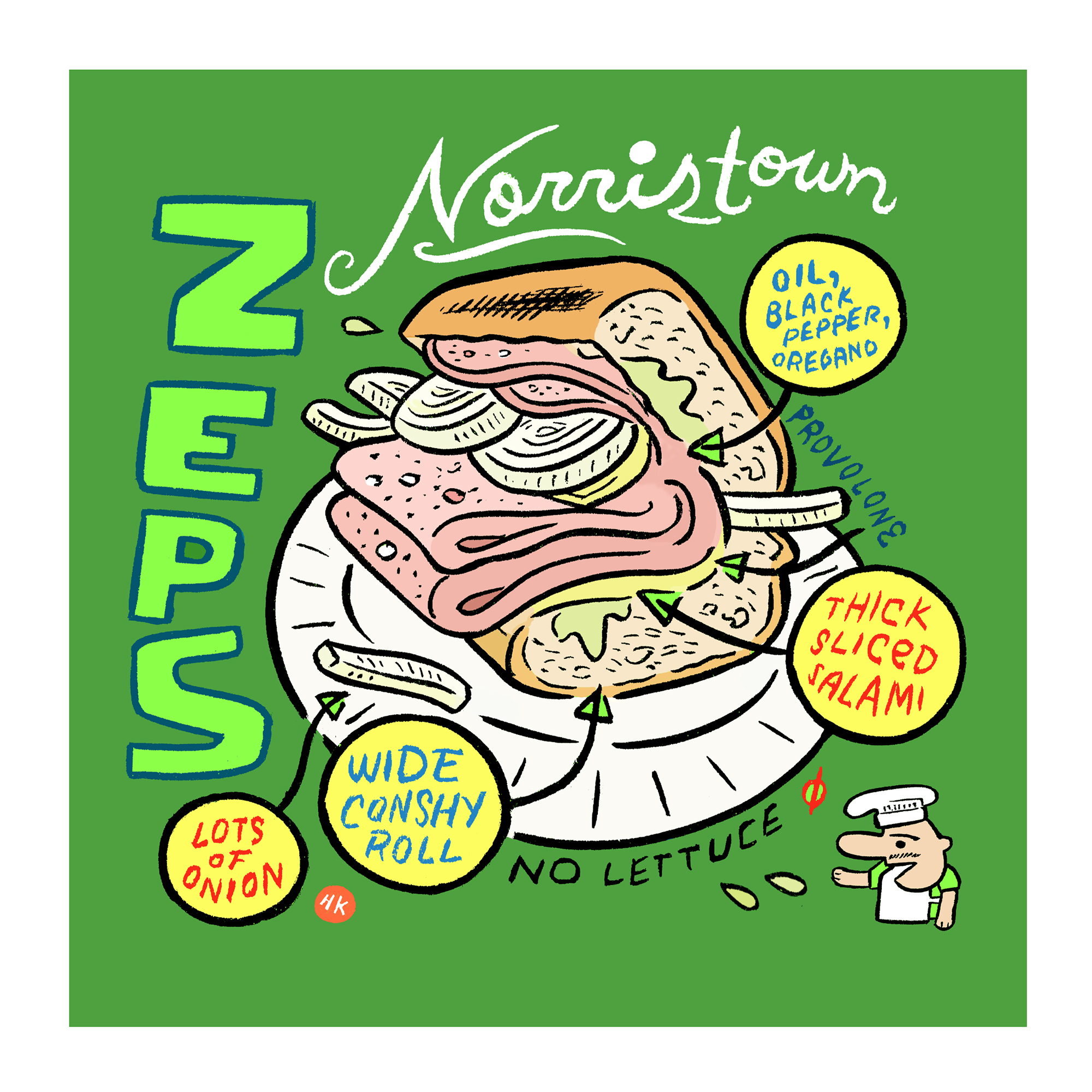 The legendary NORRISTOWN ZEP hoagie variation- cooked salami, thick cut onion, and NO LETTUCE ALLOWED. Small prints, perfect for a gift!