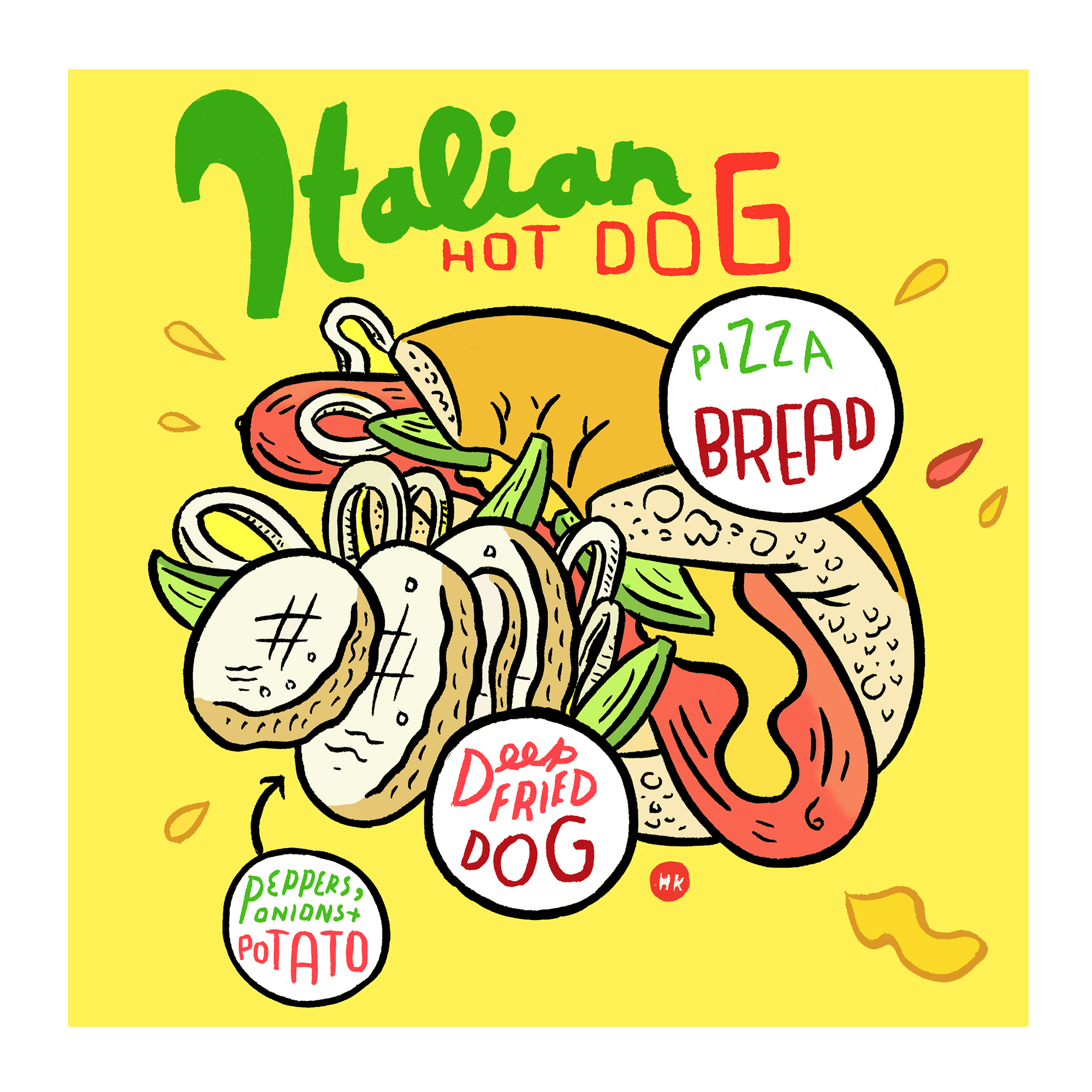 New Jersey's world famous ITALIAN HOT DOG, maybe the most perfect food known to man. Small prints, makes a great gift!