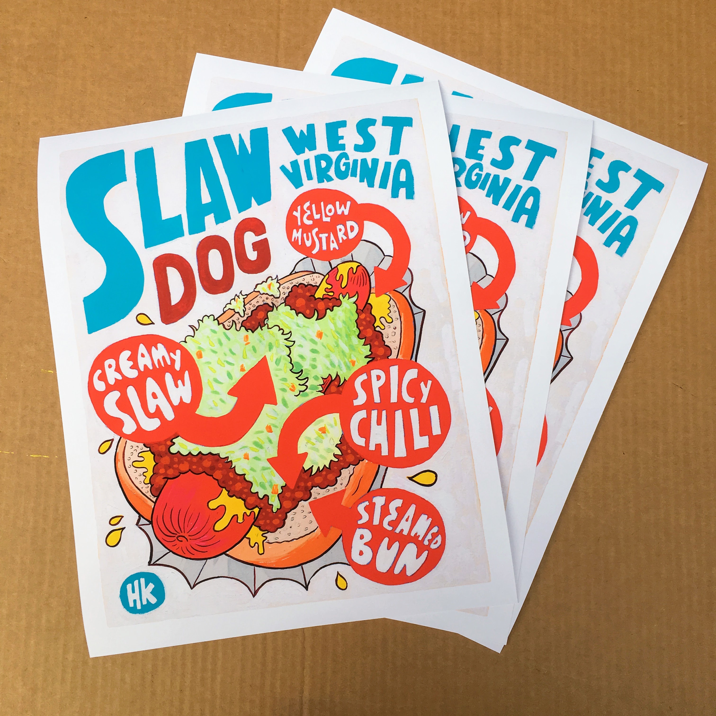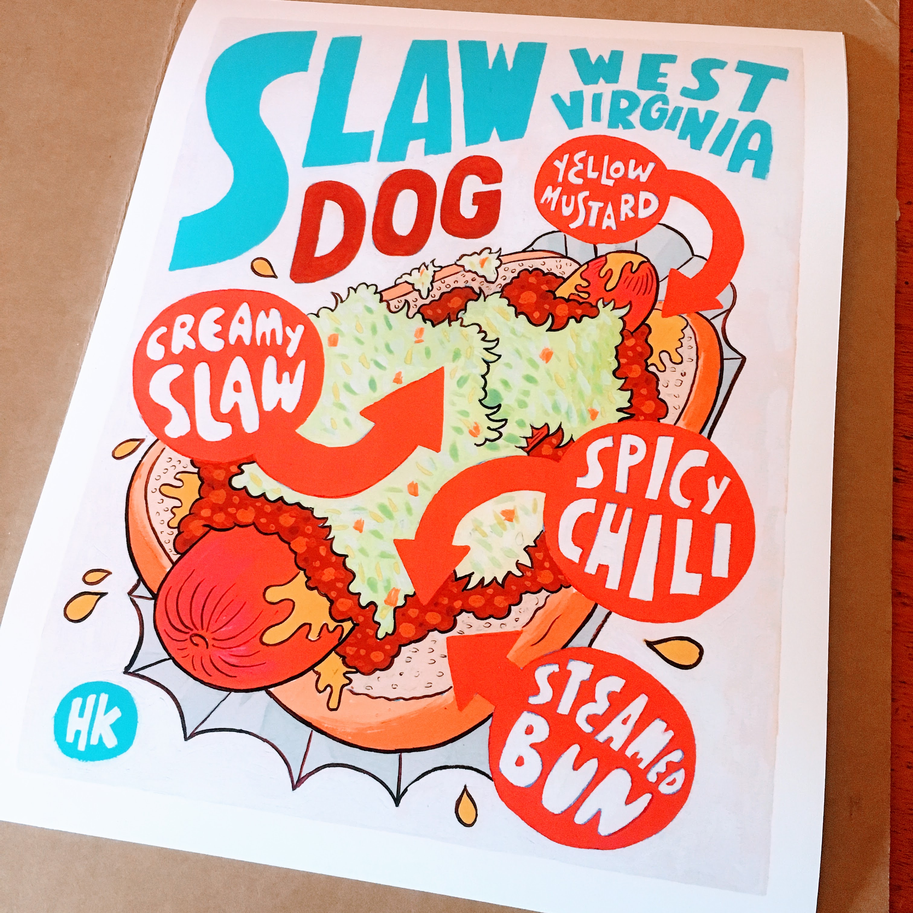 BACK IN STOCK for the first time in a while! One of my favorite hot dogs in the country, and a classic of the hot dog series!! I think this was the 3rd or 4th one I painted back in 2009 or so.